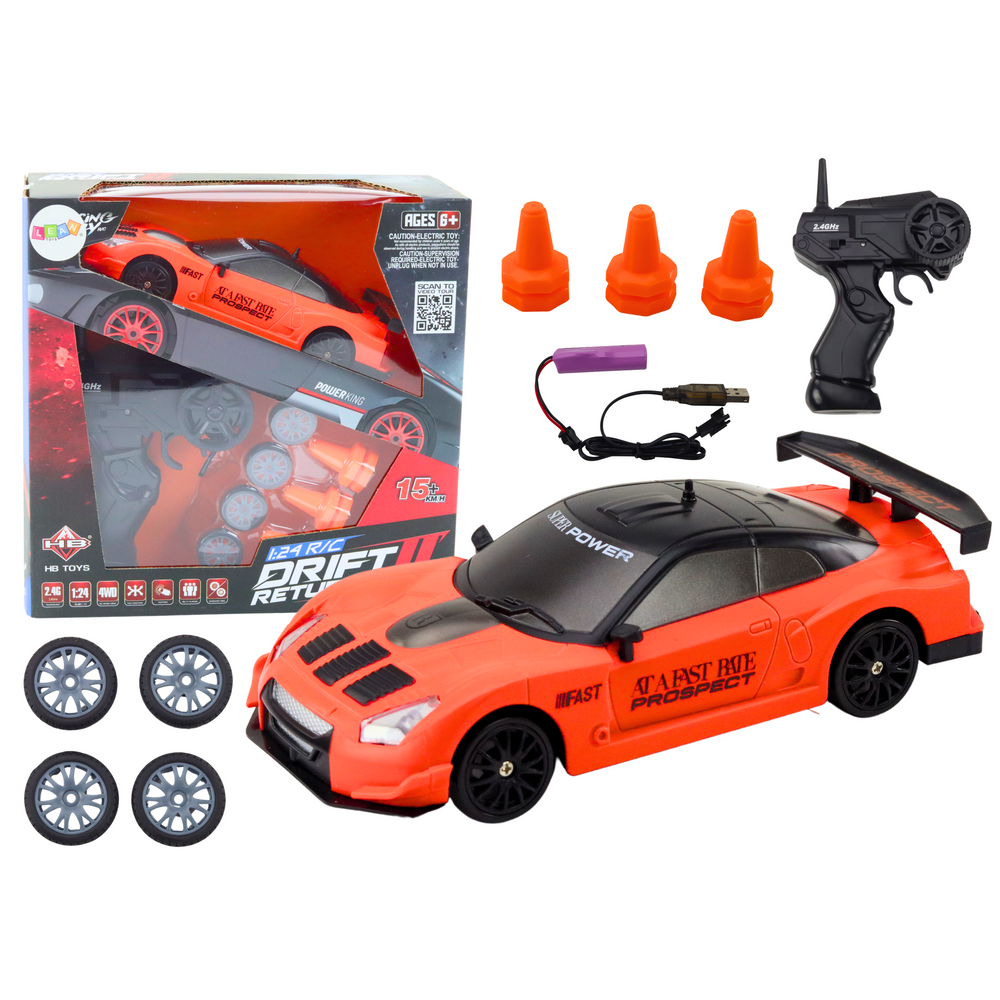 RC Športové auto 1:24 s vymeniteľnými kolesami – oranžové