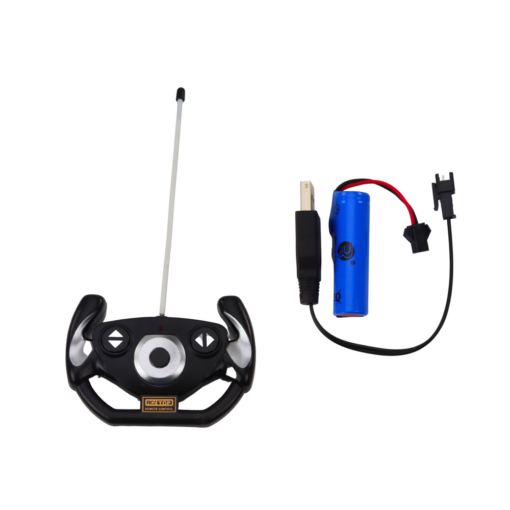 Súčasťou batérie je aj nabíjačka. Diaľkové ovládanie je napájané 2x 1,5V AA