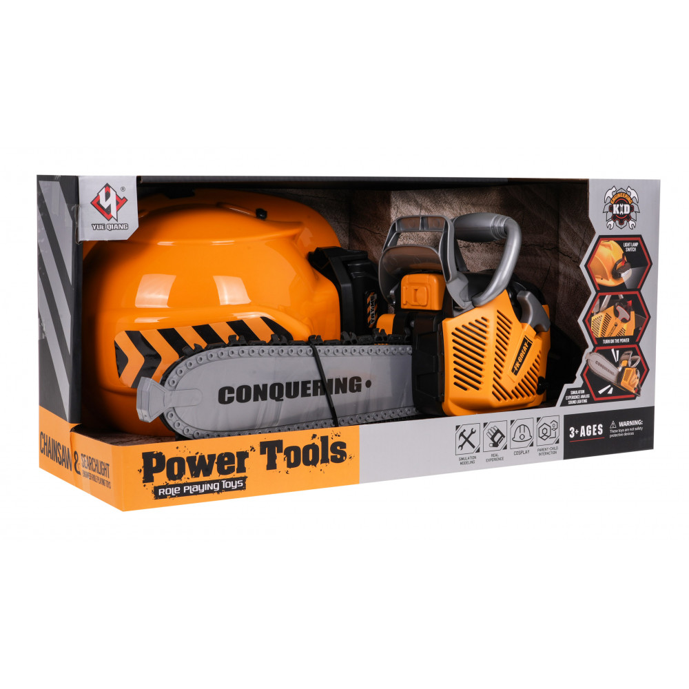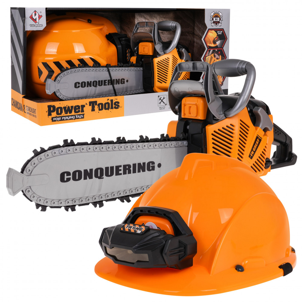 svetelné efekty - lampa na prilbe, dióda na prednej strane píly
