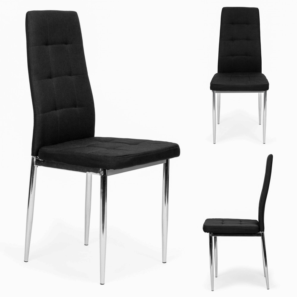 Sada 4 prešívaných čiernych stoličiek, chrómové nohy