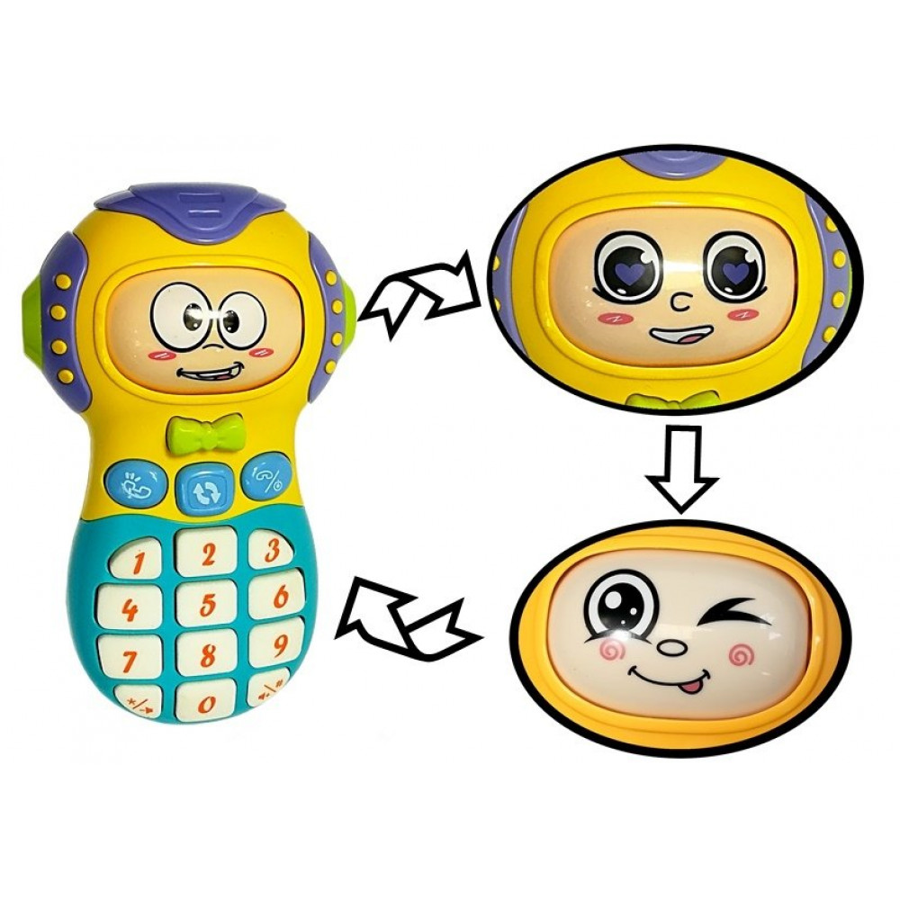 Telefón je vyrobený v tvare robota. Má 15 tlačidiel a tvár, ktorá sa po stlačení mašle zmení na inú tvár. Hračka je vyrobená v modro-žltej farbe. Telefón má veľa funkcií, vďaka ktorým si vaše dieťa užije veľa hodín zábavy.