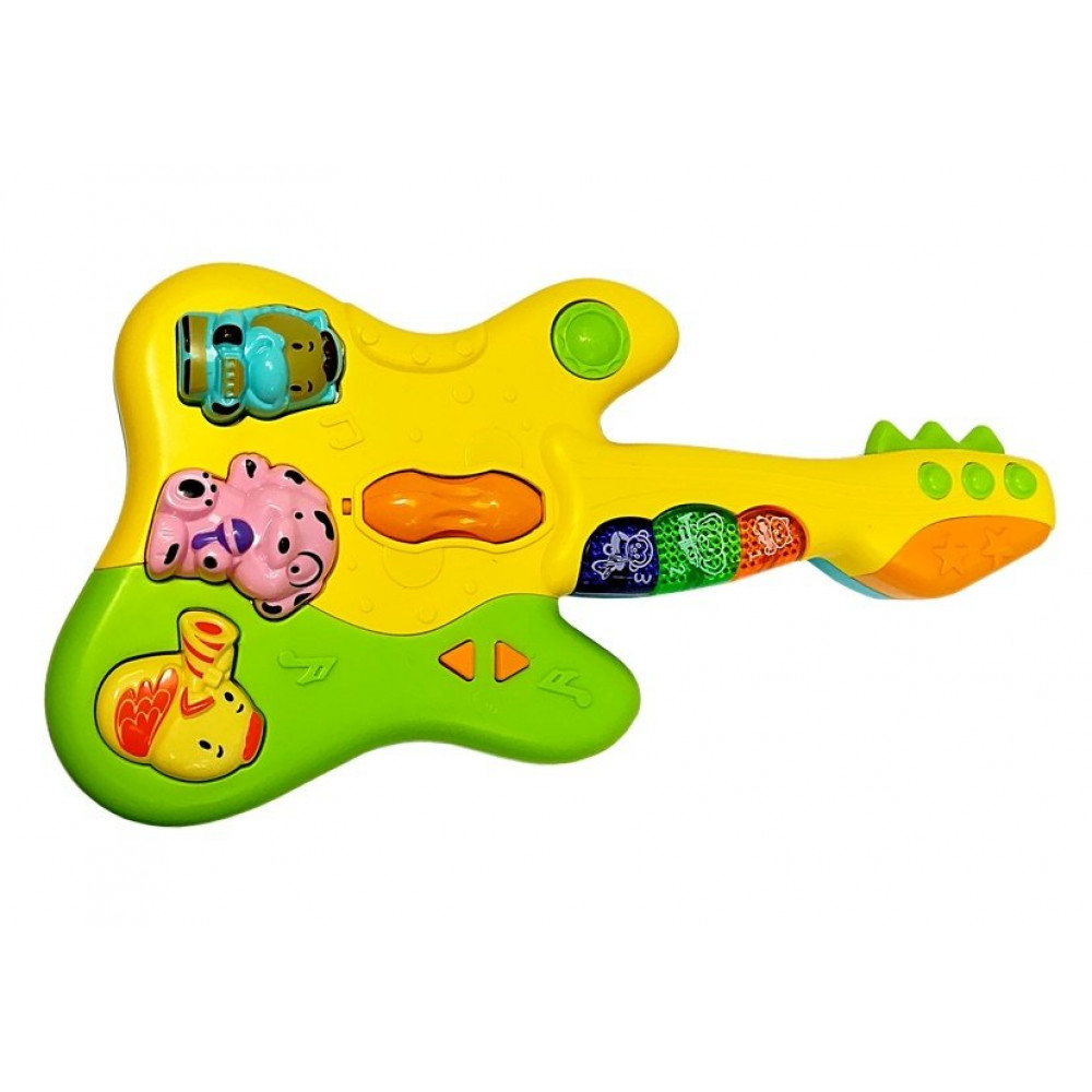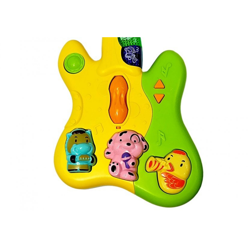 Gitara je vyrobená v žltej a zelenej farbe. Má veľa rôznych funkcií a zvukových tlačidiel. Možnosť nastavenia hlasitosti.