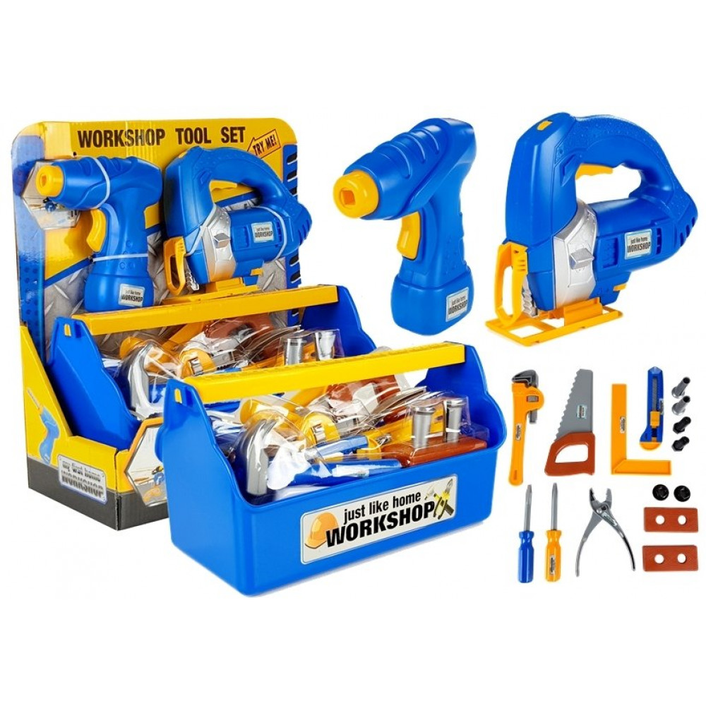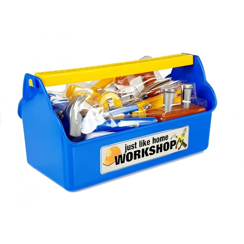 Multifunkčná sada náradia je vyrobená z plastu, ktorý je zodpovedný za nízku hmotnosť jednotlivých prvkov. Dizajn hračky sa týka skutočných nástrojov, ktoré sú kombinované s jednoduchými neutrálnymi farbami - vďaka tomu sa bude dieťa cítiť ako skutočný majster. Veľkou výhodou hračiek je prispôsobenie ich rozmerov detským rukám, čo výrazne uľahčí ich použitie.