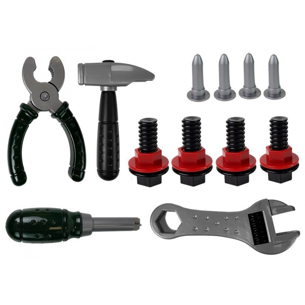 Táto skvelá sada obsahuje kvalitne vyrobené nástroje, vyrobené výhradne z plastu. Každé dieťa by malo mať nástroje na to, aby sa stalo otcovým a dedkovým asistentom. Potom sa vyrovná s najväčšou poruchou a rýchlo chybu opraví. Sada urobí mnohých malých pomocníkov veľkou zábavou. Všetky prvky sú začiatkom vytvárania vlastnej dielne. Dieťa sa naučí rozlišovať tvary a farby, rozvíjať manuálne zručnosti a precíznosť, ale predovšetkým predstavivosť a posilňovať koncentráciu dieťaťa.