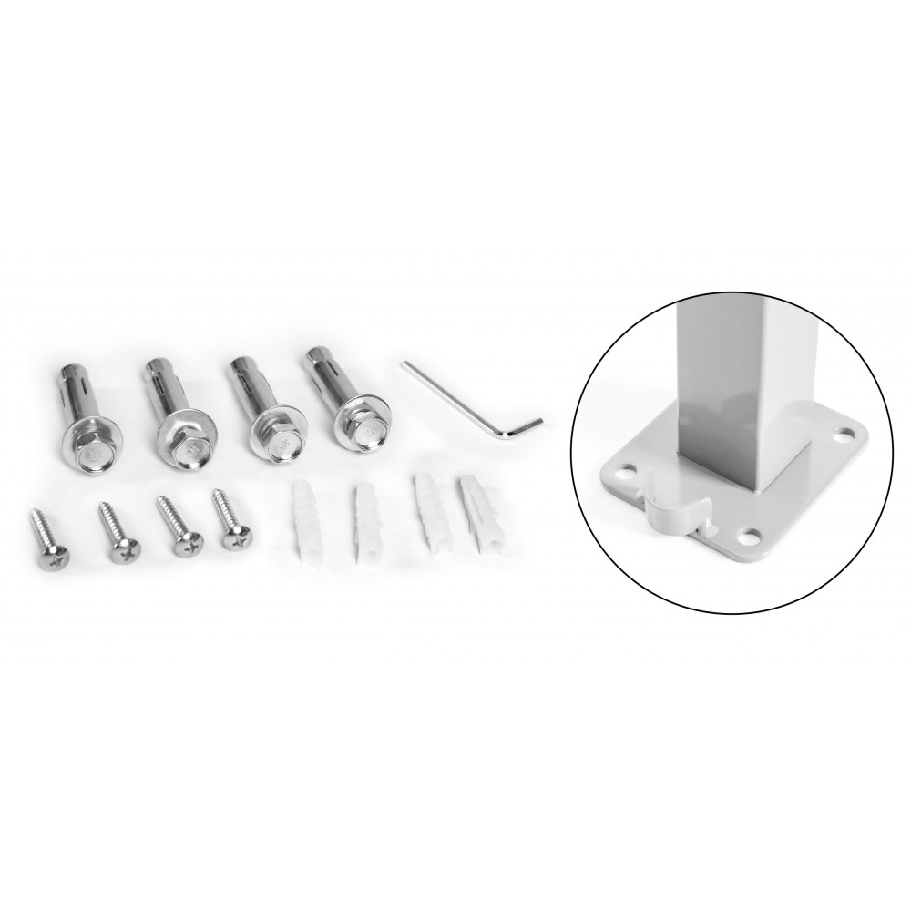 - Montáž nástenného držiaka sa vykonáva pomocou 4 pevných rozperných skrutiek, ktoré zaručujú pevnosť a stabilitu konštrukcie. Tento spôsob montáže je účinný a bezpečný a umožňuje pevné a trvalé upevnenie markízy aj v oblastiach vystavených silnému vetru alebo iným nepriaznivým poveternostným podmienkam.