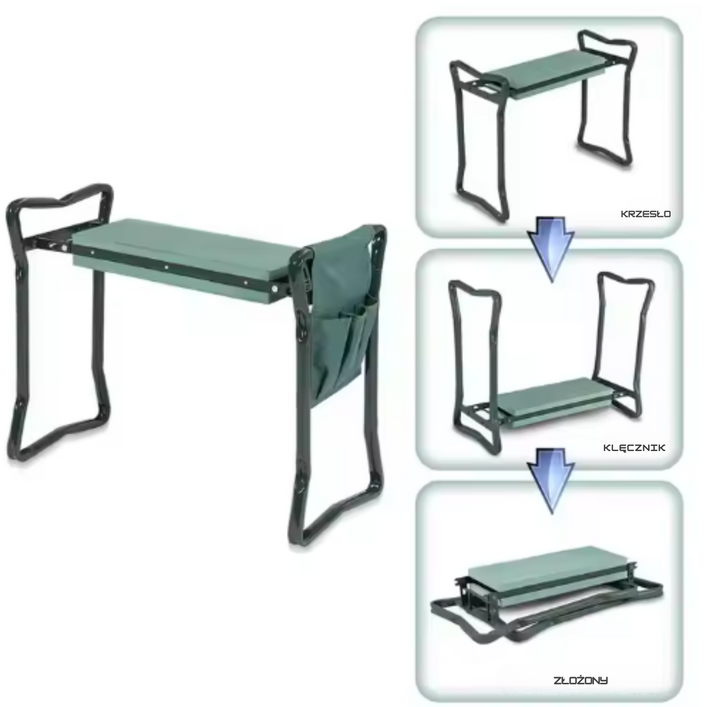 a mäkký povrch na sedenie a kľačanie. Skladacia konštrukcia umožňuje