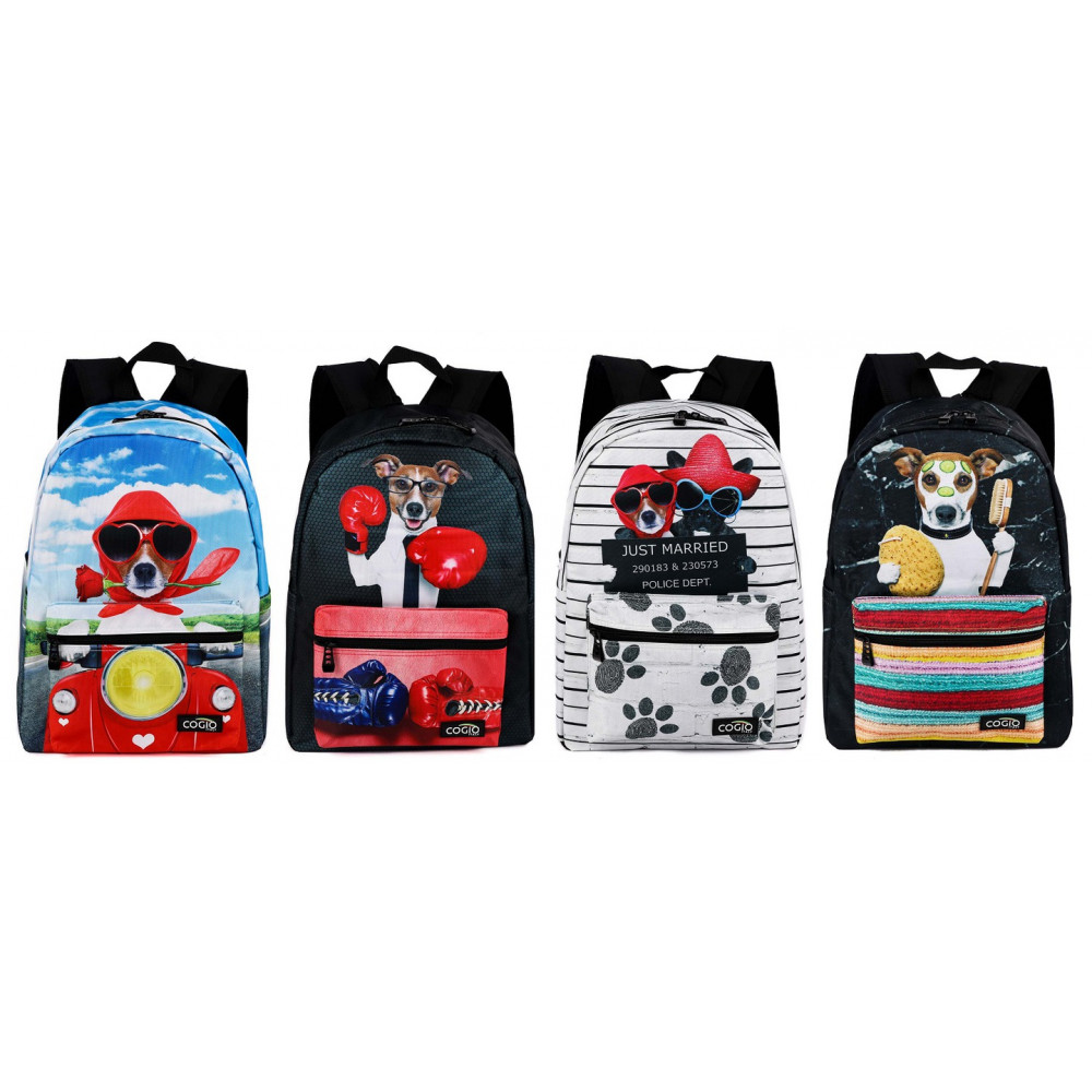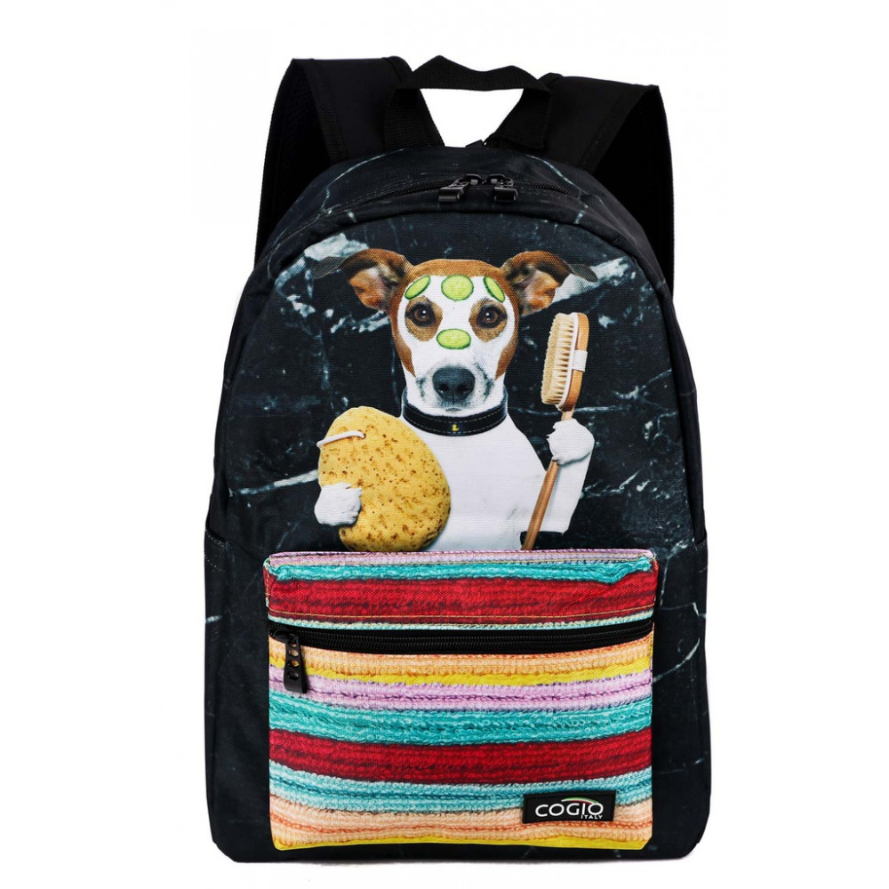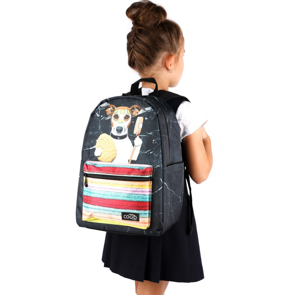 Školská taška Cogio Psík v sprche čierno-farebný