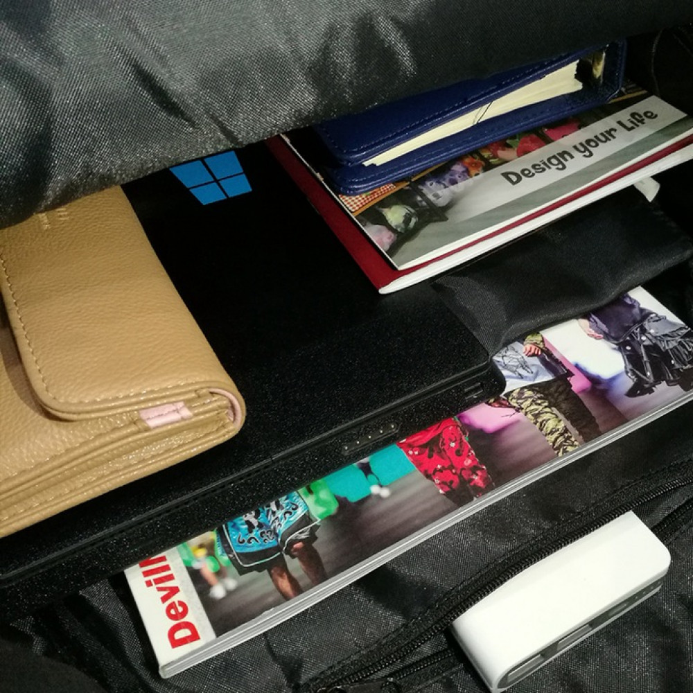 Taška sa vo vnútri rozdeľuje na 2 časti + vrecko na zips. Na vonkajšej strane má taška z boku 2 bočné vrecká, predné vrecko so zipsom.