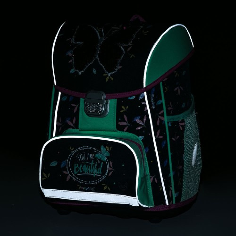 materiálu s reflexnými prvkami. Široké mäkčené popruhy sú navrhnuté tak,