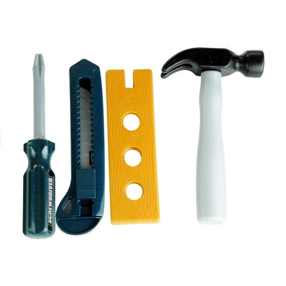 Multifunkčná sada náradia je vyrobená z plastu, ktorý je zodpovedný za nízku hmotnosť jednotlivých prvkov. Hračka sa podobá skutočným nástrojom, ktoré boli kombinované s jednoduchými neutrálnymi farbami- vďaka tomu sa bude dieťa cítiť ako skutočný majster. Veľkou výhodou hračiek je prispôsobenie ich rozmerov detským rukám, čo výrazne uľahčí ich použitie. Sada obsahuje: - skrutkovač - kladivo, - výmenný skrutkovač, - veľké klince - skrutky a matice - kus dreva, - nôž.
