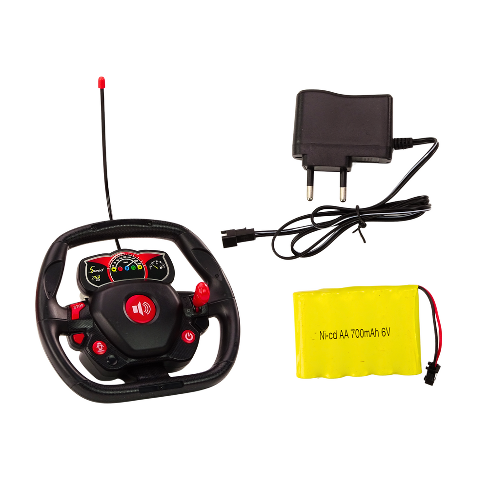 automobilového nadšenca. Diaľkové ovládanie je v tvare volantu s frekvenciou 27