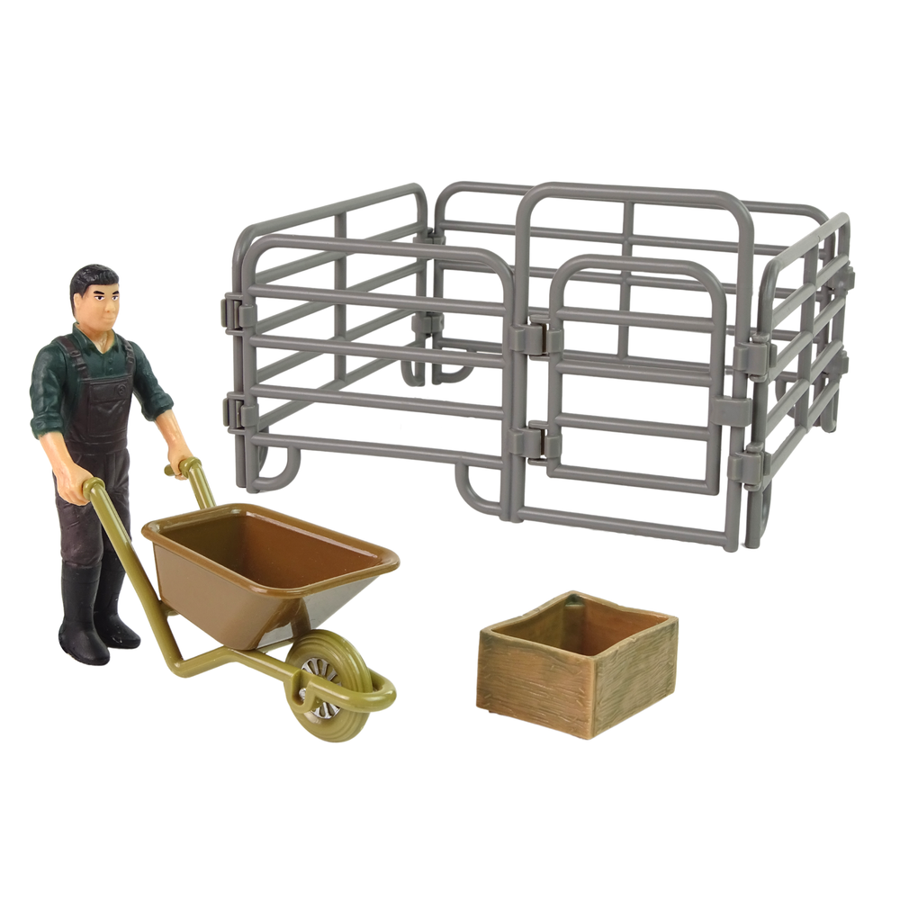 základných druhov zvierat, ktoré sa vyskytujú na farme. Farmár s fúrikom zatiaľ