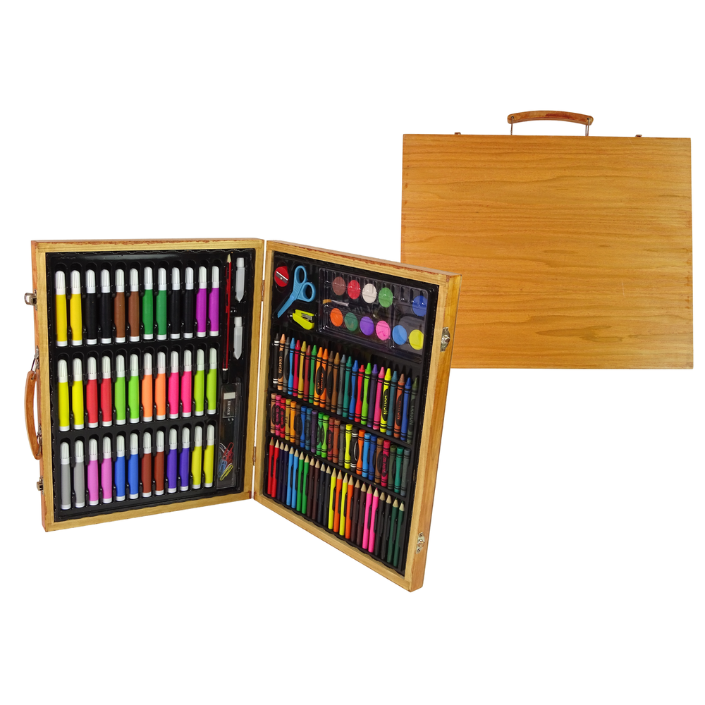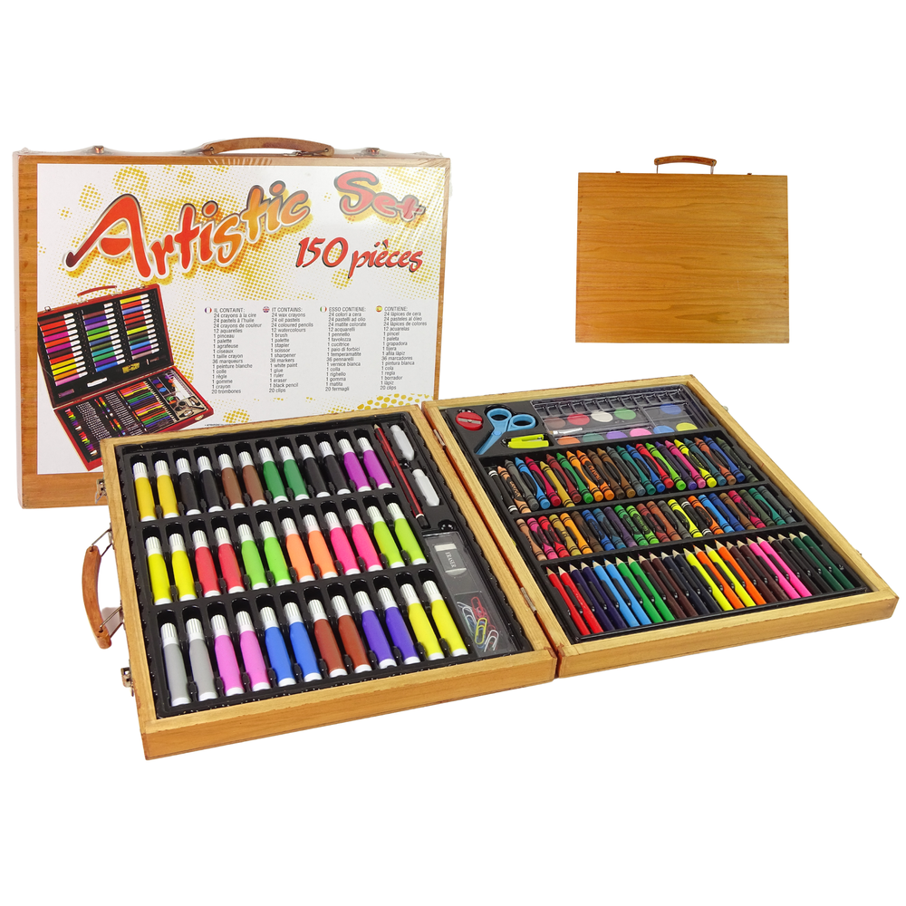 obsahuje všetko, čo potrebujete na tvorenie: pastelky, fixky, voskovky, farby atď.