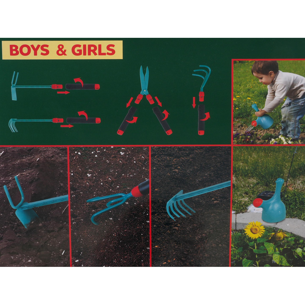 obsahuje všetko potrebné pre prácu v záhrade. Náradie je bezpečné, nemá ostré