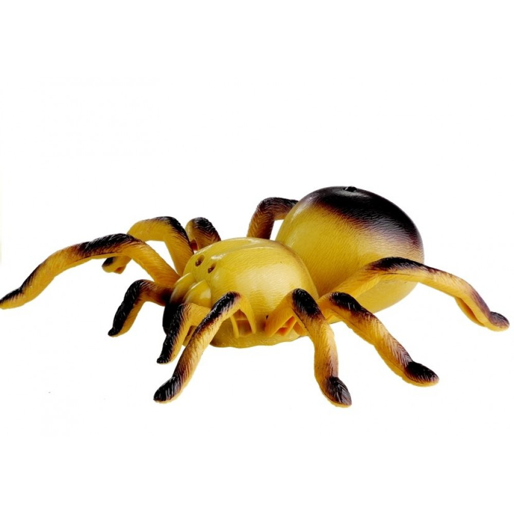 Obrovské rýchlo sa pohybujúce pavúky môžu byť veľkou zábavou - aj pre dospelých! V našej ponuke je žltá tarantula, ktorá bude určite skvelou hračkou pre celú rodinu. Diaľkovo ovládané zviera sa dá použiť niekoľkými spôsobmi - umožní vám to zabaviť sa, ale bude to tiež veľká náhrada pre dieťa, ktoré sníva o svojom teráriu. Ovládaný pavúk vyvoláva dojem skutočnej tarantuly! Žlto-hnedé farby sa vzťahujú na skutočnú, zatiaľ čo veľké rozmery hračky v kombinácii so žiariacimi očami a pohyblivými nohami z nej urobia obľúbenú hračku vášho dieťaťa.