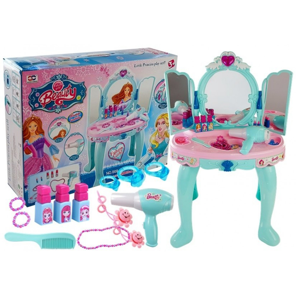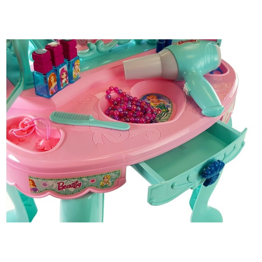 Toaletný stolík Beauty Set so zrkadlovým svetlom modro-ružový