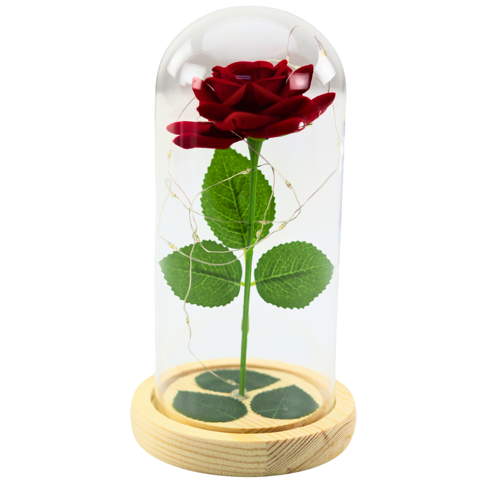 Večná ruža v sklenenej kupole s LED osvetlením – červená
