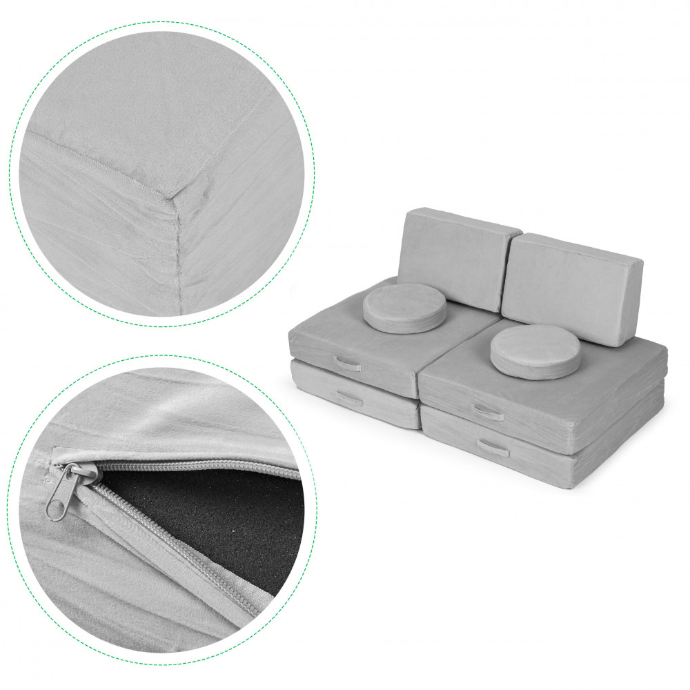 Veľká rozkladacia modulárna pohovka pre deti - 8 mäkkých sivých vankúšov