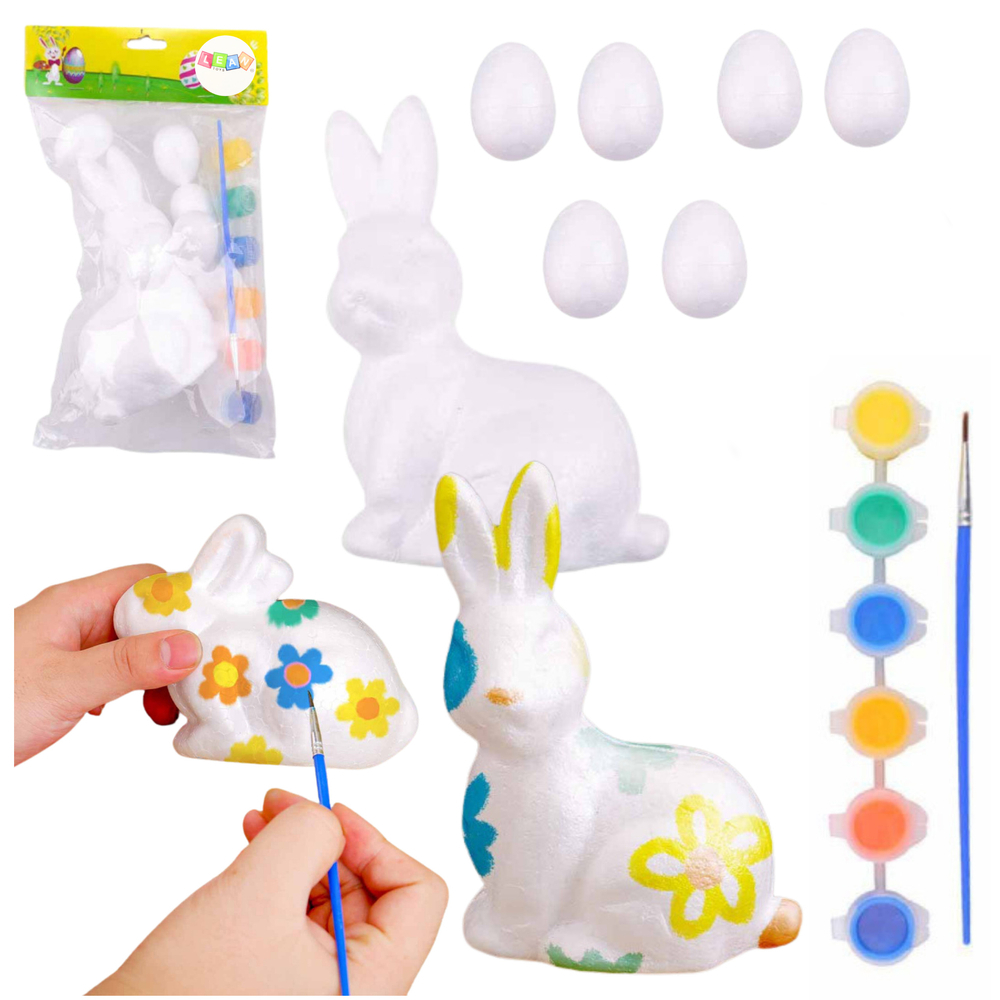 obsahuje 6 polystyrénových vajec a figúrku zajaca. Okrem toho je v sade