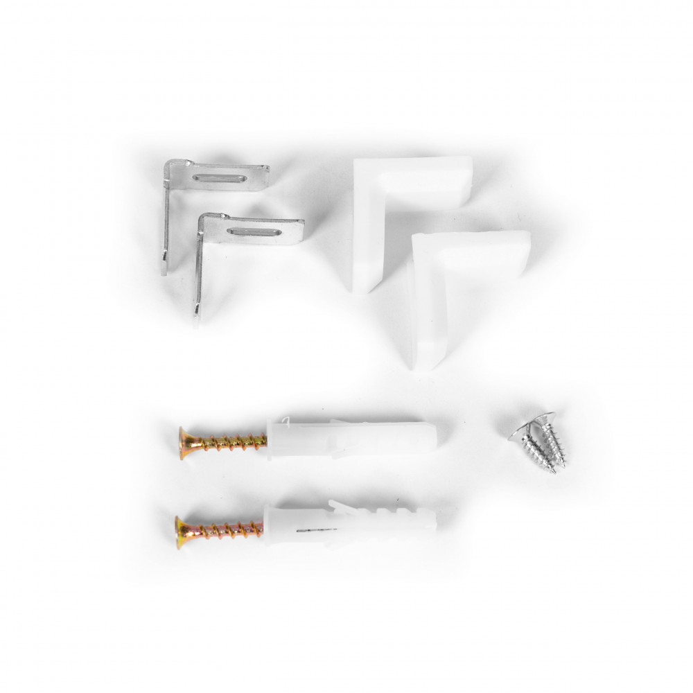 Súprava obsahuje špeciálne kovové uholníky a skrutky, ktorými policu pripevníte na stenu. To je dôležité najmä vtedy, ak máte malé deti, vďaka ochrane sa nemusíte obávať o ich bezpečnosť.