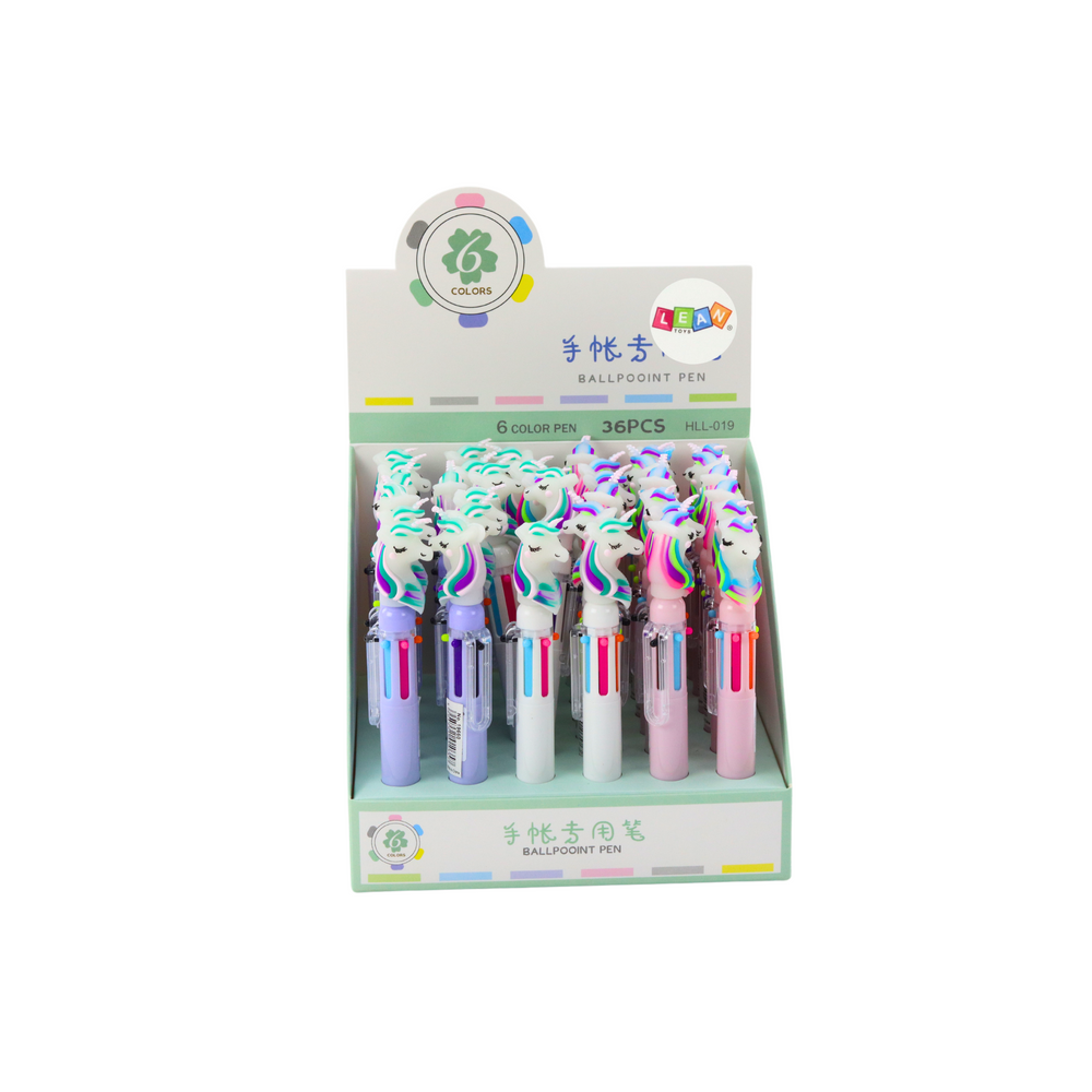 Viacfarebné automatické guľôčkové pero Jednorožec - 6 farieb, mix