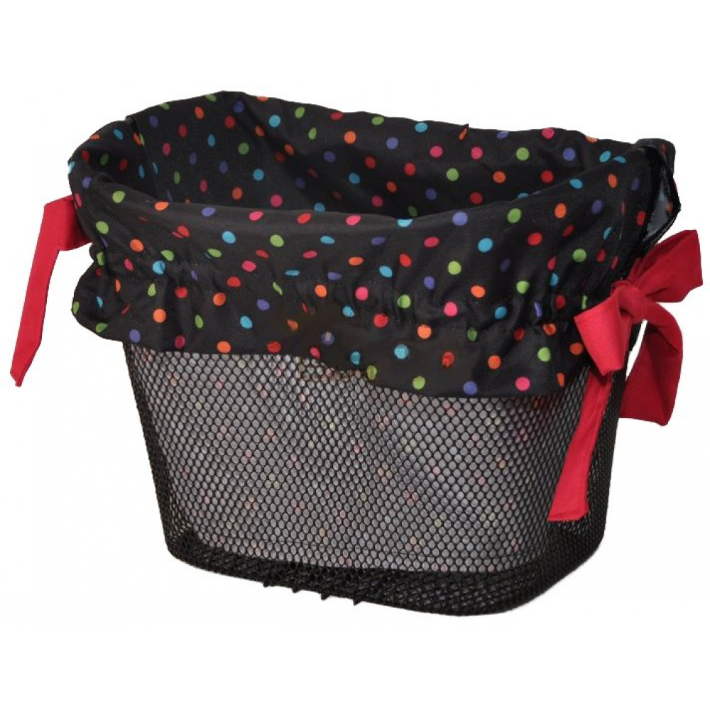 Vložka do košíka čierna s farebnými bodkami a červenou stuhou