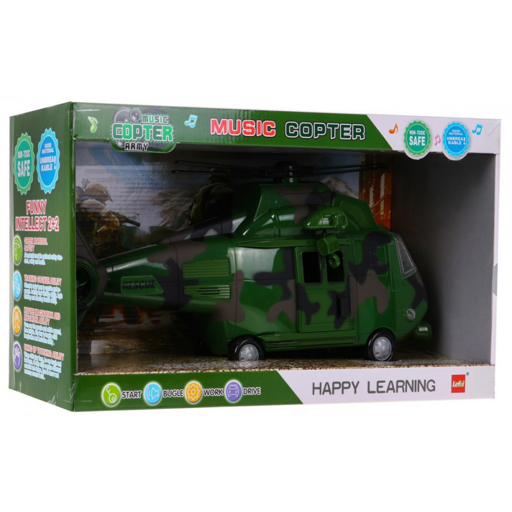 Vojenský vrtuľník so zvukovými a svetelnými efektami zelený