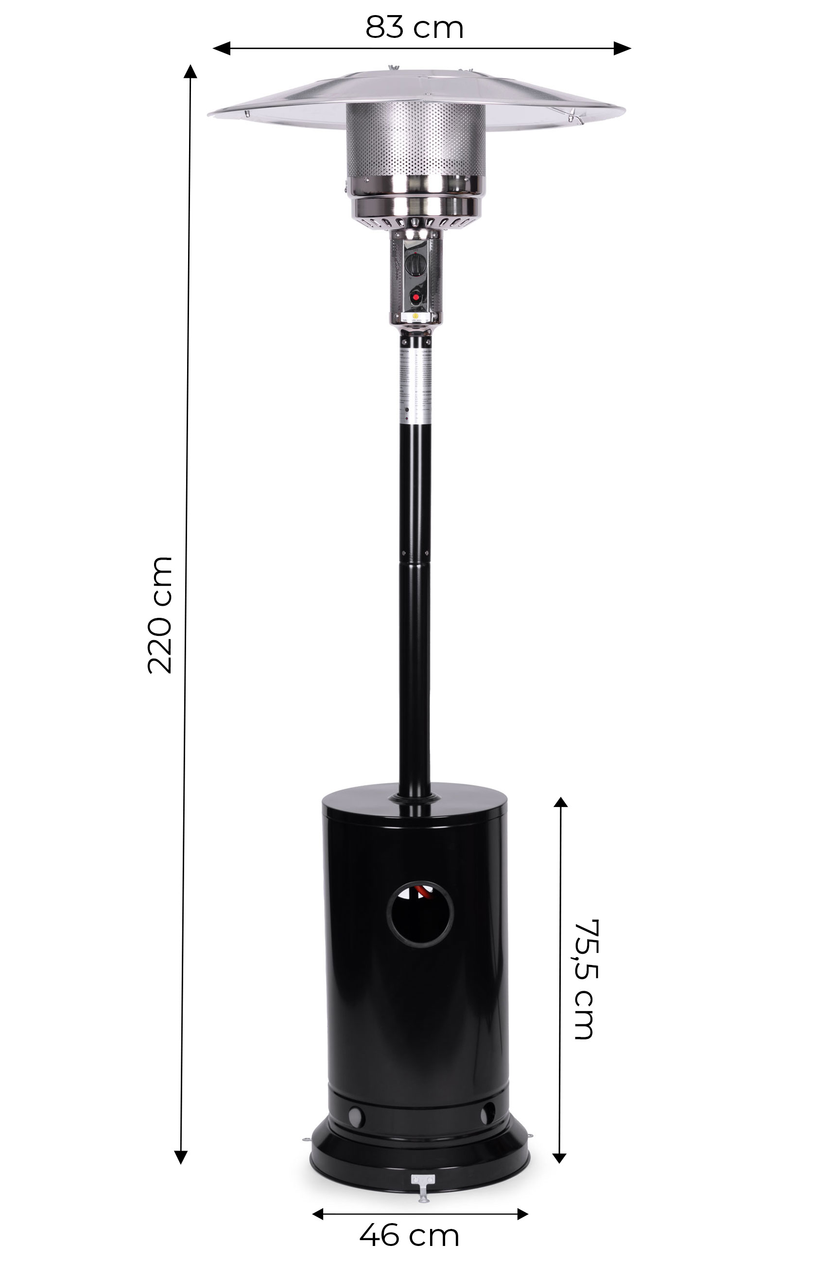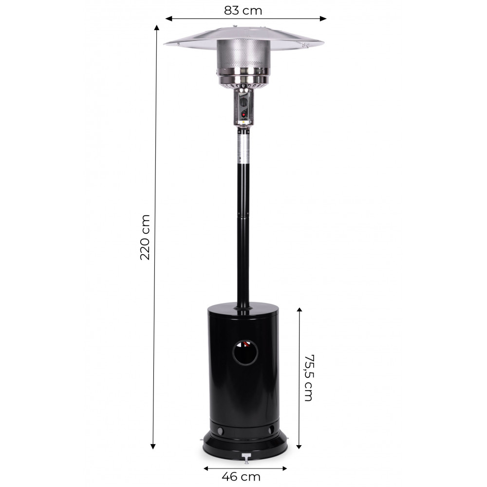 V hornej časti ohrievača sa nachádza ovládací panel s intuitívnym nastavením výkonu spaľovania a tlačidlom, ktoré aktivuje zapaľovač. To vám umožní ľahko zapáliť plameň a mať vždy plnú kontrolu nad teplotou ohrevu.