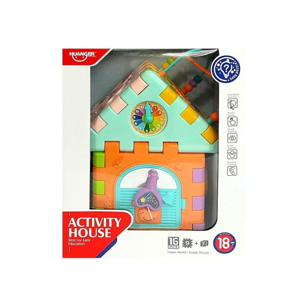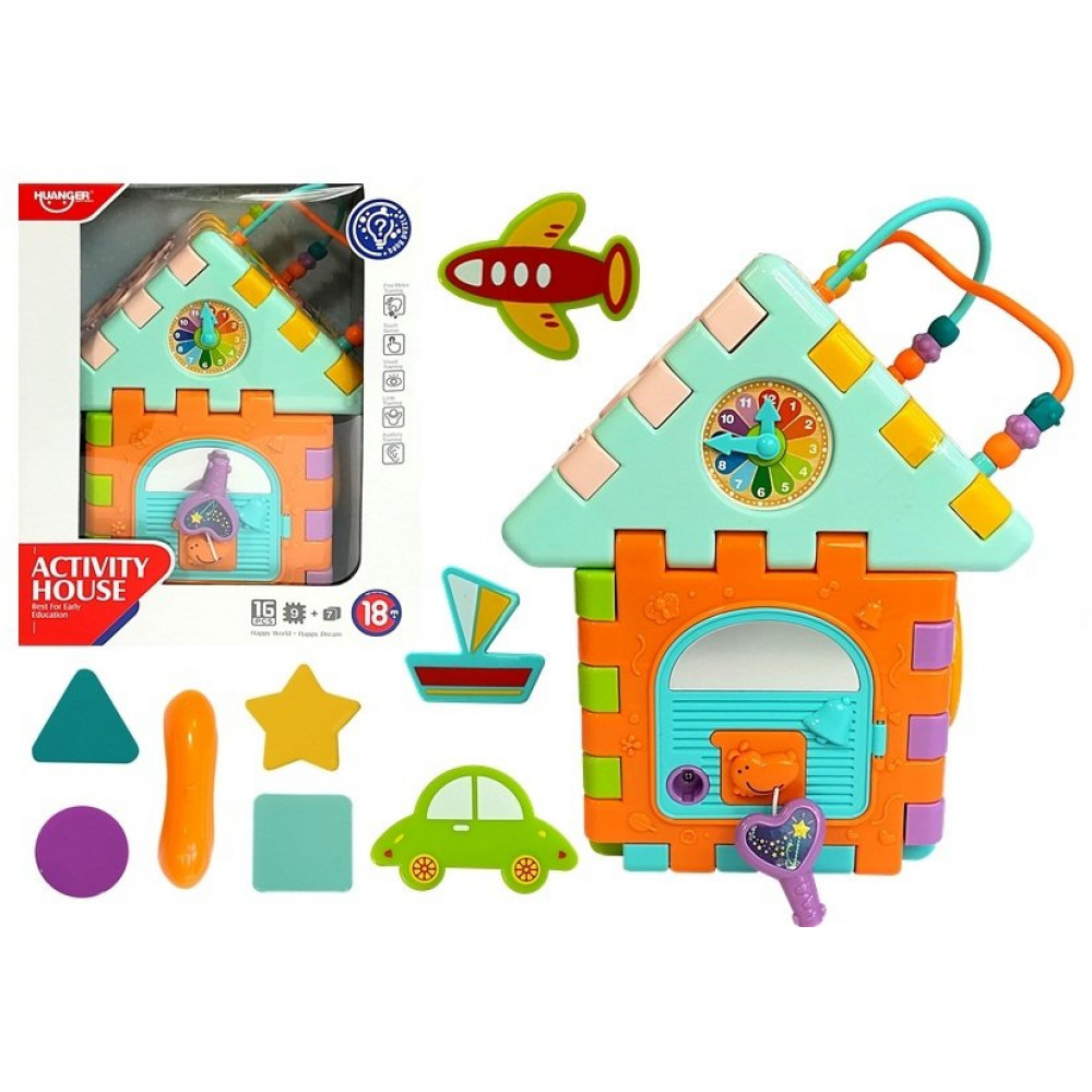 Ponúkaný domček bude rozvíjať manuálne a motorické schopnosti dieťaťa, ako aj schopnosť rozlišovať tvary, farby, materiály a zvuky, ako aj logické myslenie.