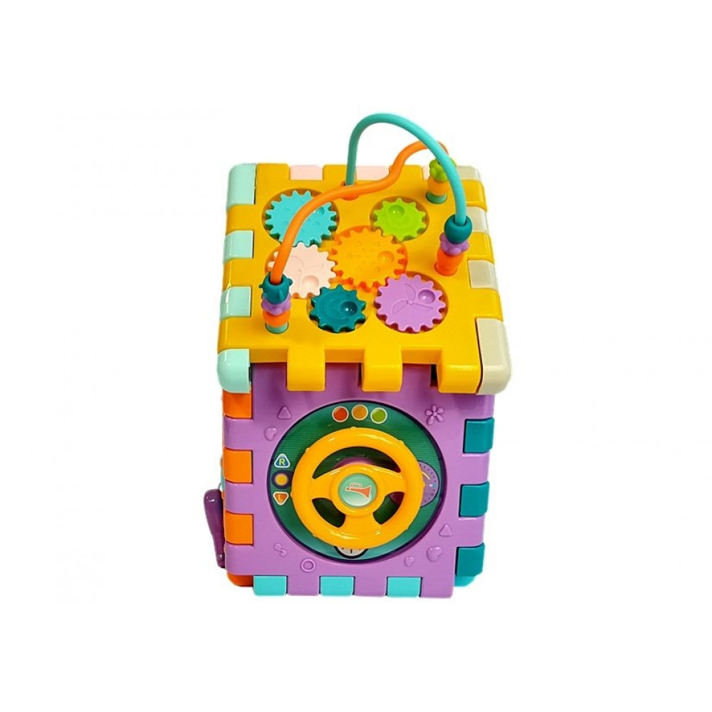 Hračka v tvare domčeka má štyri bočné steny a navyše niekoľko funkcií na streche. Každá zo stien je iná, hneď ako prejde na ďalšiu, prekvapí ju úplne novými hrami a novými podnetmi. Kocka sa vyznačuje kvalitným spracovaním certifikovaných materiálov, ako aj pestrou farbou a dizajnom, ktoré upútajú pozornosť dieťaťa.
