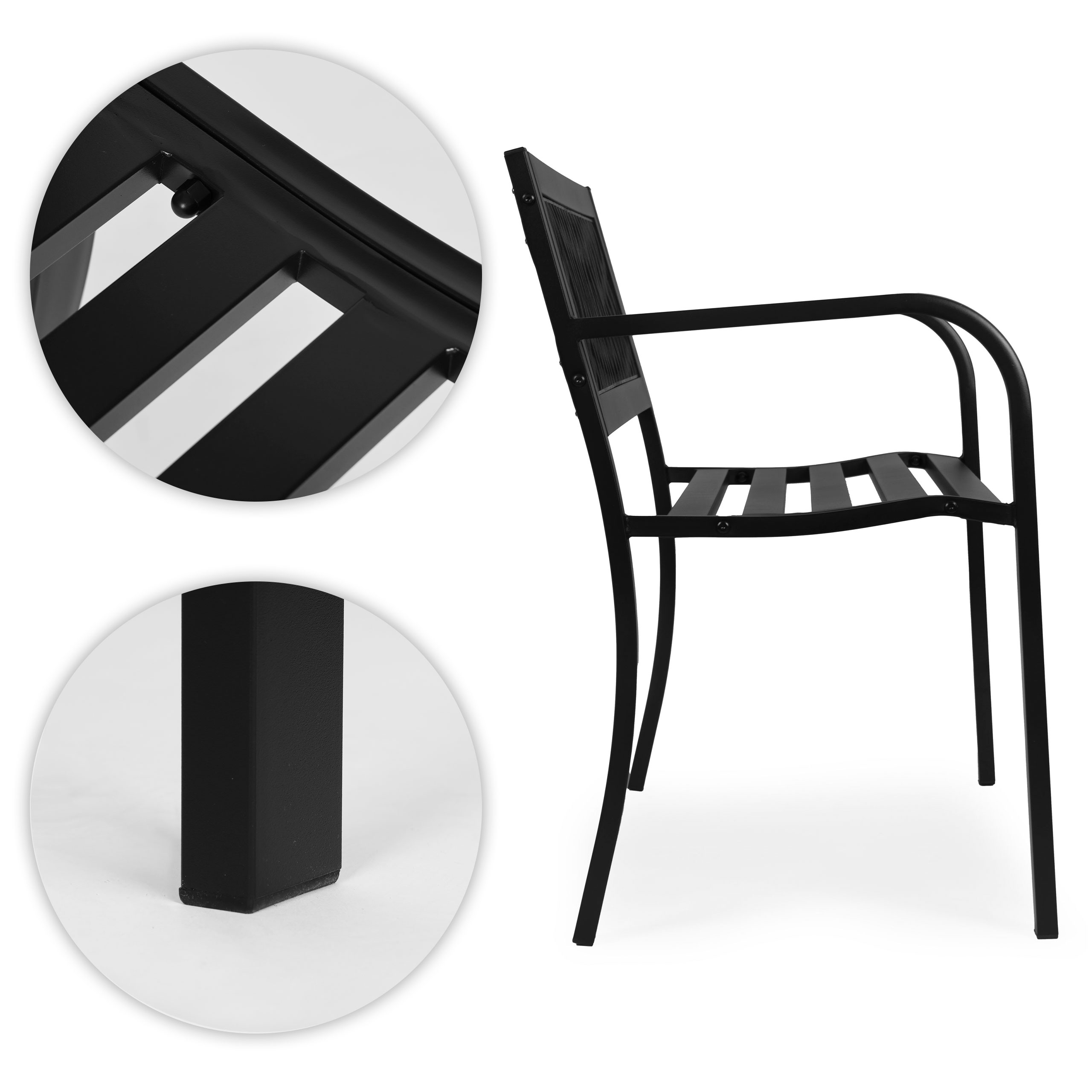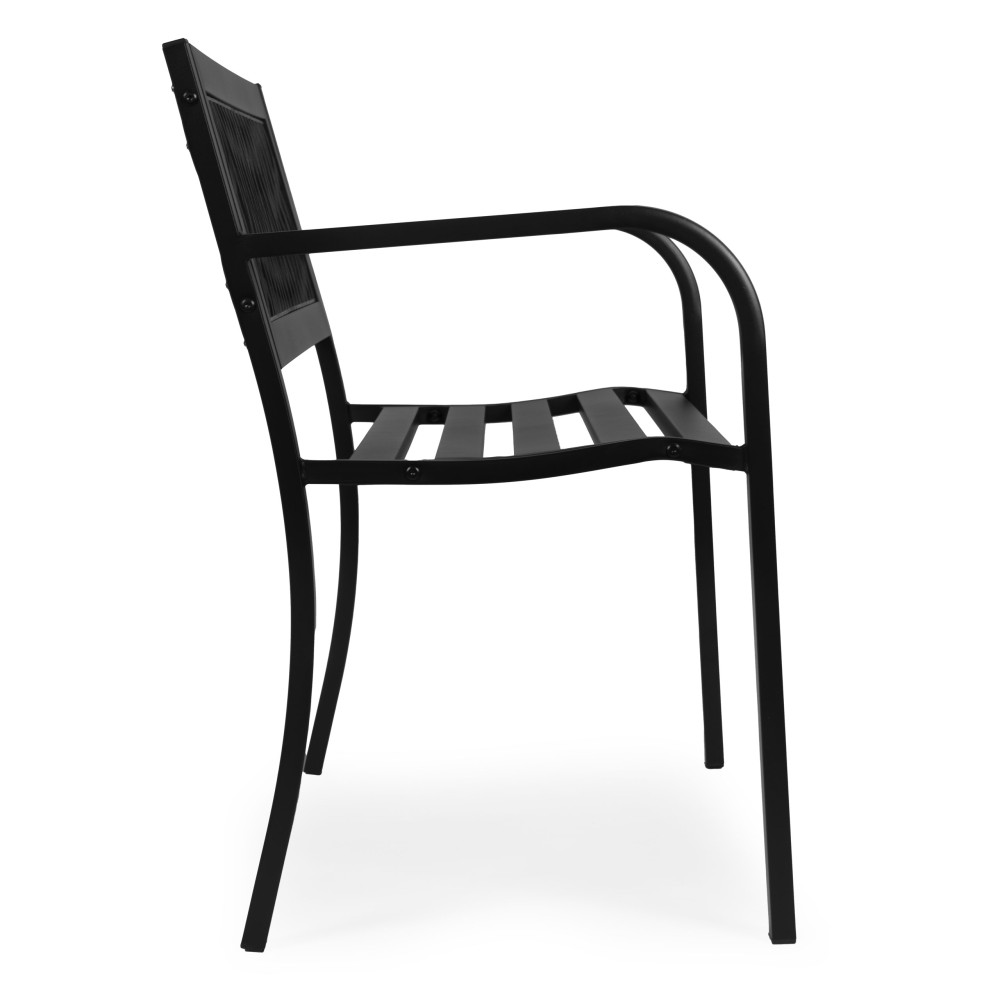 Oceľová konštrukcia lavičky je pokrytá ochrannou vrstvou, čo obmedzuje riziko vzniku hrdze a chráni povrch pred mechanickým poškodením. Ažurová výplň operadla je vyrobená z odolného materiálu (PVC), ktorý je odolný voči vlhkosti a dobre sa osvedčuje pri používaní na čerstvom vzduchu.