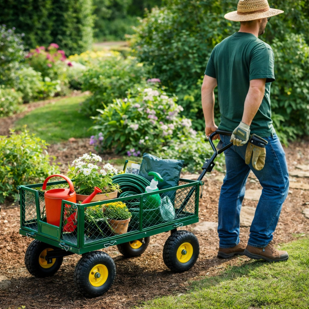 záhradný prepravný vozík je robustné a funkčné riešenie určené na pohodlnú