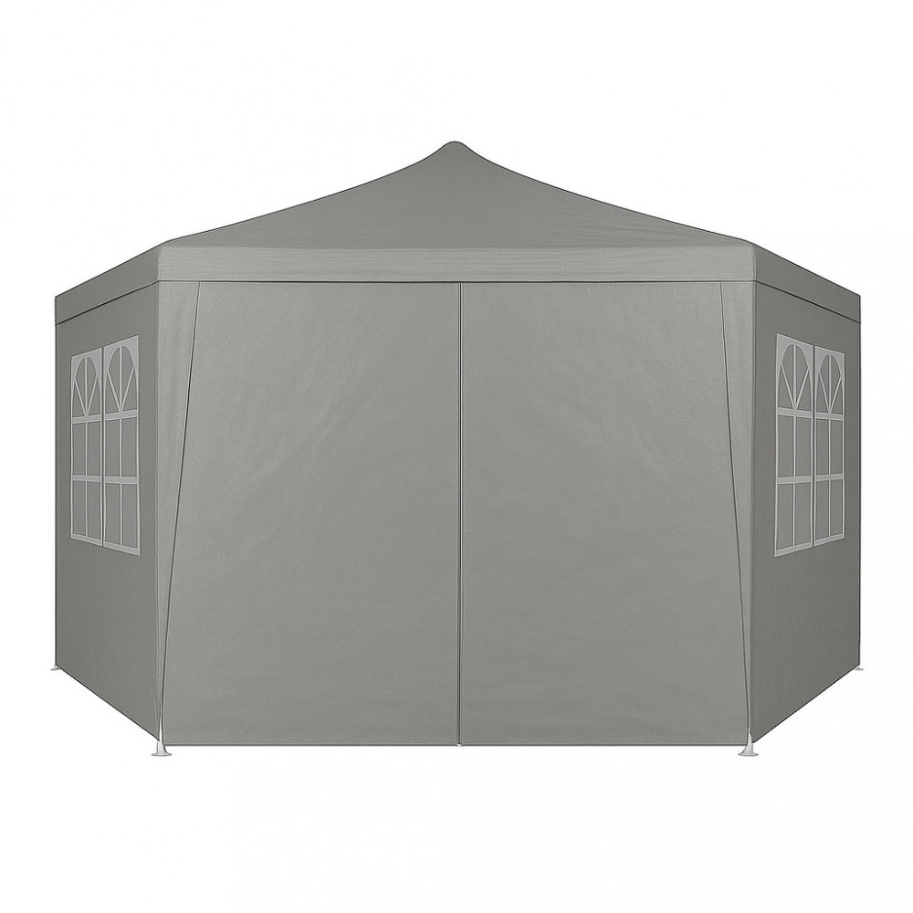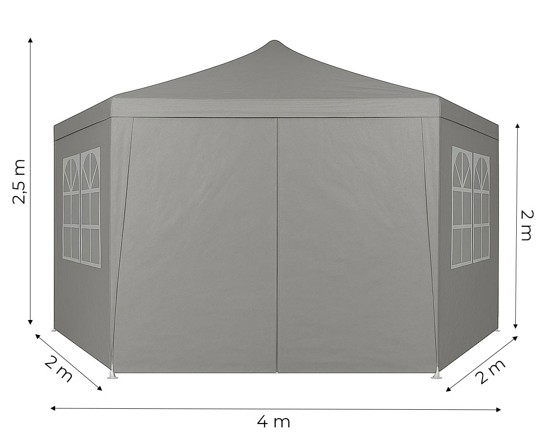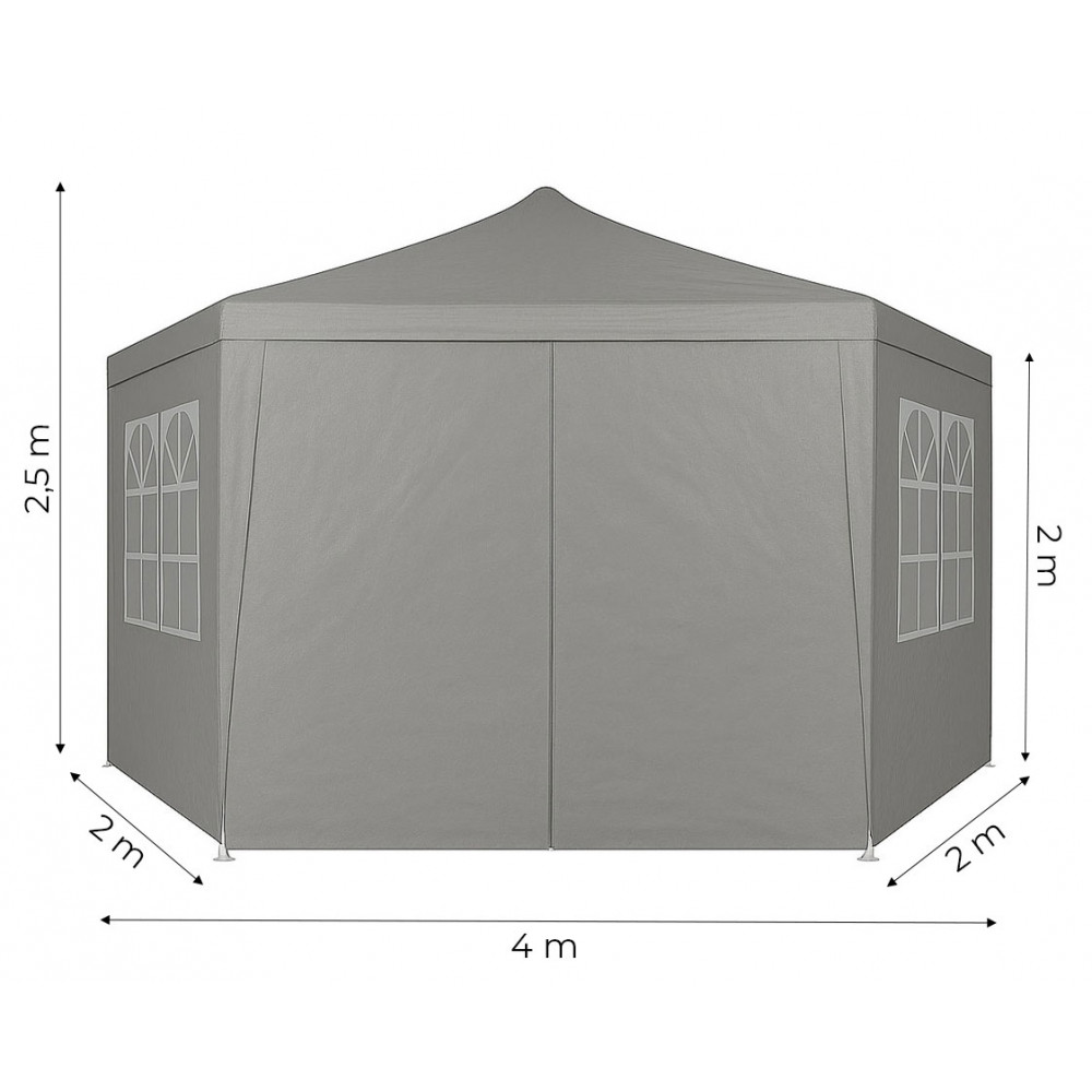 Steny pavilónu sú vybavené veľkými oknami, ktoré poskytujú prirodzené svetlo do interiéru a zároveň ho chránia pred vetrom a zrážkami. Vďaka nim je interiér pavilónu svetlejší a prívetivejší, čo zvyšuje komfort používania počas stretnutí, večierkov alebo vonkajších podujatí. Stan má vchod na zips, ktorý poskytuje rýchly a pohodlný prístup do vnútra stanu. Ide o praktické riešenie, ktoré uľahčuje používanie pavilónu, najmä ak sa často pohybujete medzi vnútorným a vonkajším priestorom.
