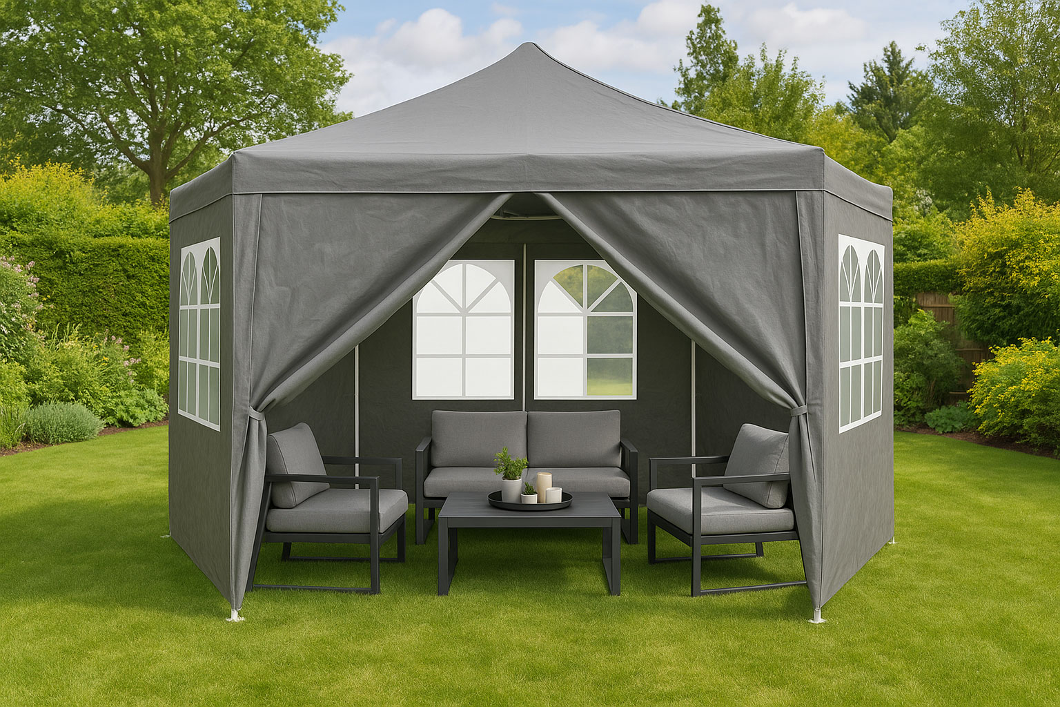 Záhradný stan 2x2x2 m s oknami - sivá MultiGarden
