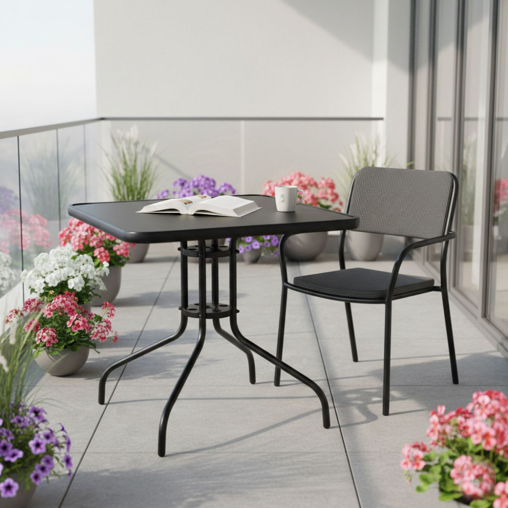 Záhradný stôl MultiGarden je ideálnym miestom na relax – vychutnajte si rannú kávu na balkóne, oddýchnite si popoludní s knihou alebo usporiadajte intímne posedenie v teplý večer. Štvorcová doska stola poskytuje pohodlný priestor na používanie a stabilná konštrukcia zaručuje pohodlné a bezpečné používanie vonku. Vďaka svojej jednoduché forme vyzerá stôl dobre v každej relaxačnej zóne – na balkóne, terase alebo v záhrade – a vytvára praktické miesto na nápoje, občerstvenie a drobné doplnky.