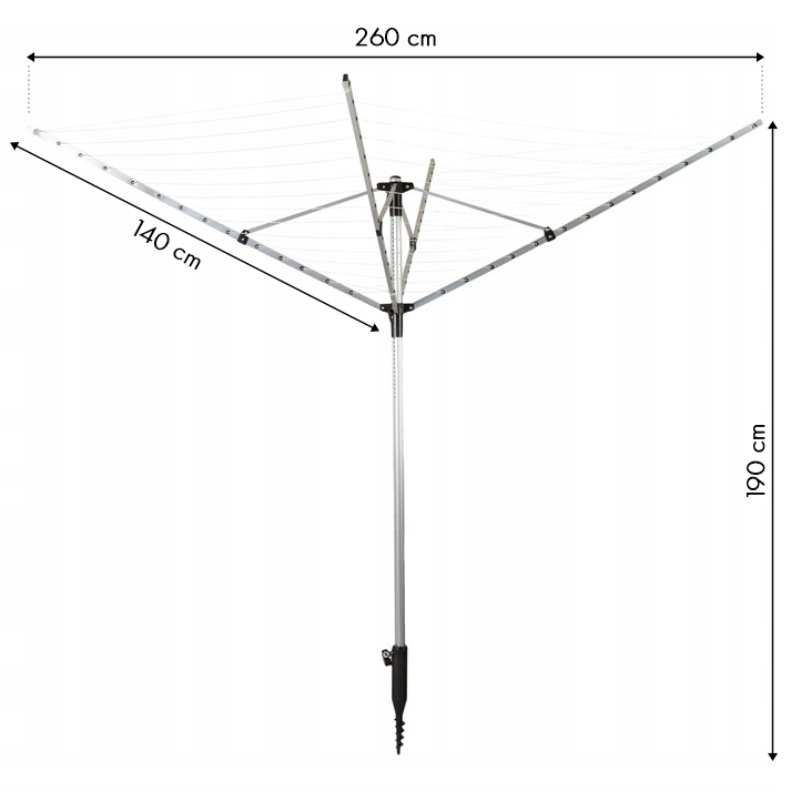 Vďaka širokým ramenám (140 cm) je sušiaca plocha dostatočne veľká na ľahké zavesenie väčších predmetov, ako sú posteľná bielizeň, plachty a prikrývky.
