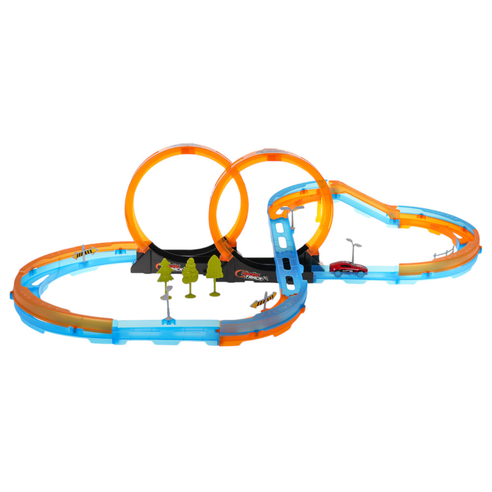 pozostáva z 28 prvkov pre vlastnú montáž. Trať má rovné úseky na zrýchlenie