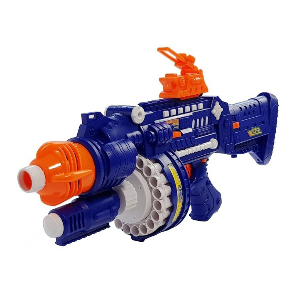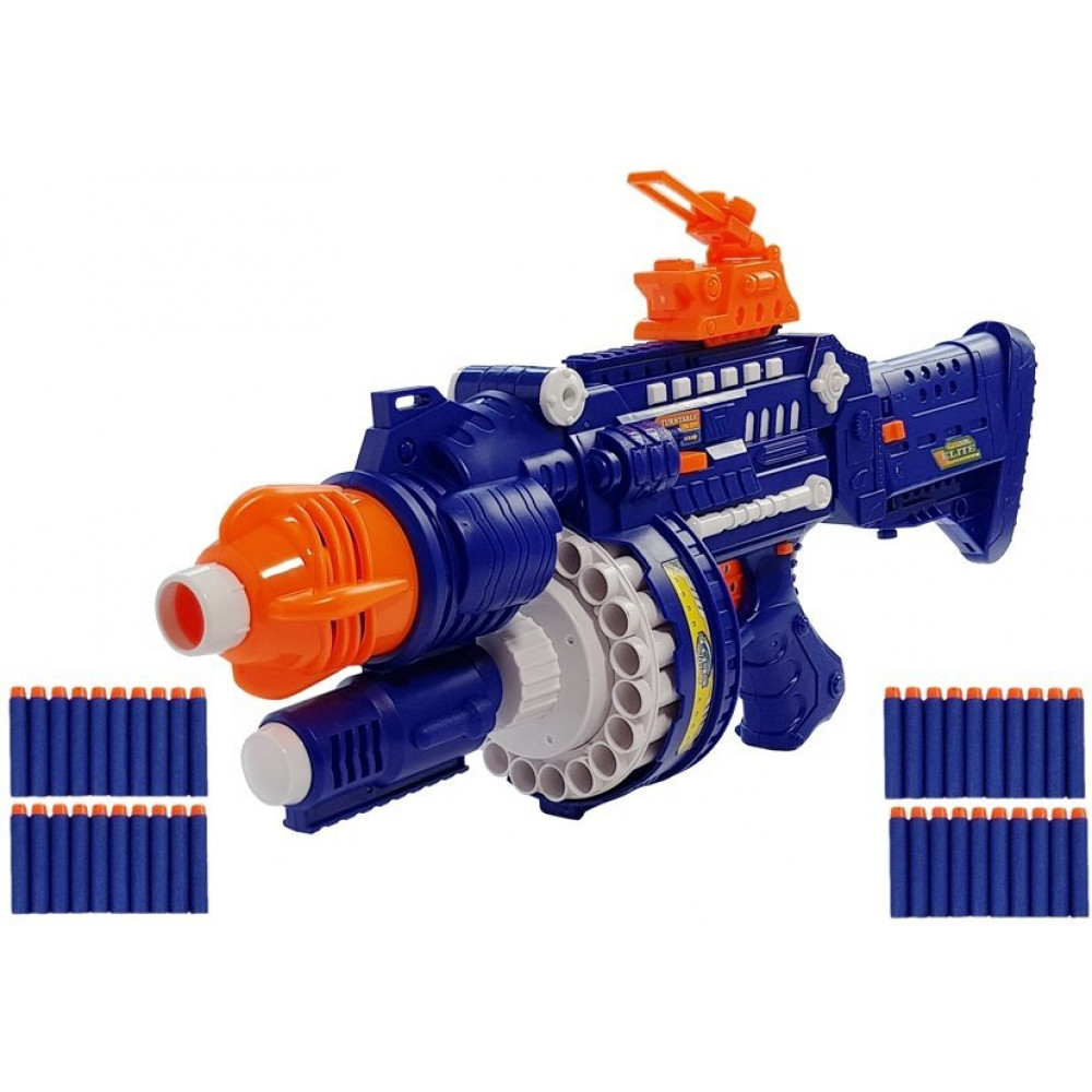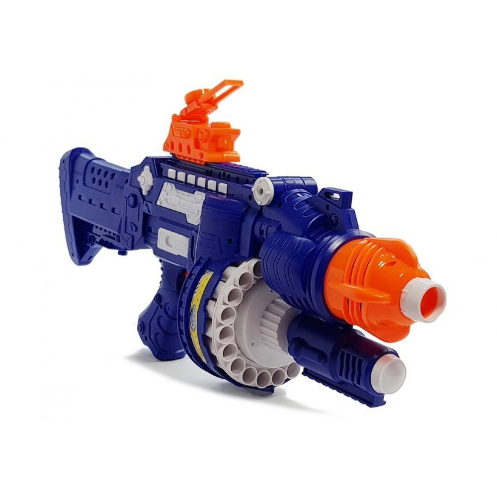 Zbraň s veľkým zásobníkom a penovými nábojmi - modro-oranžová