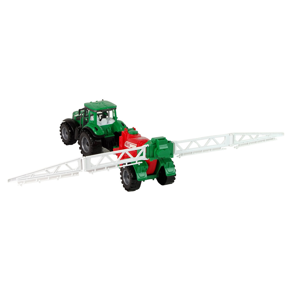 pohyb vpred a vzad. Rozprašovač má dlhé, biele ramená, ktoré sú pohyblivé. Traktor
