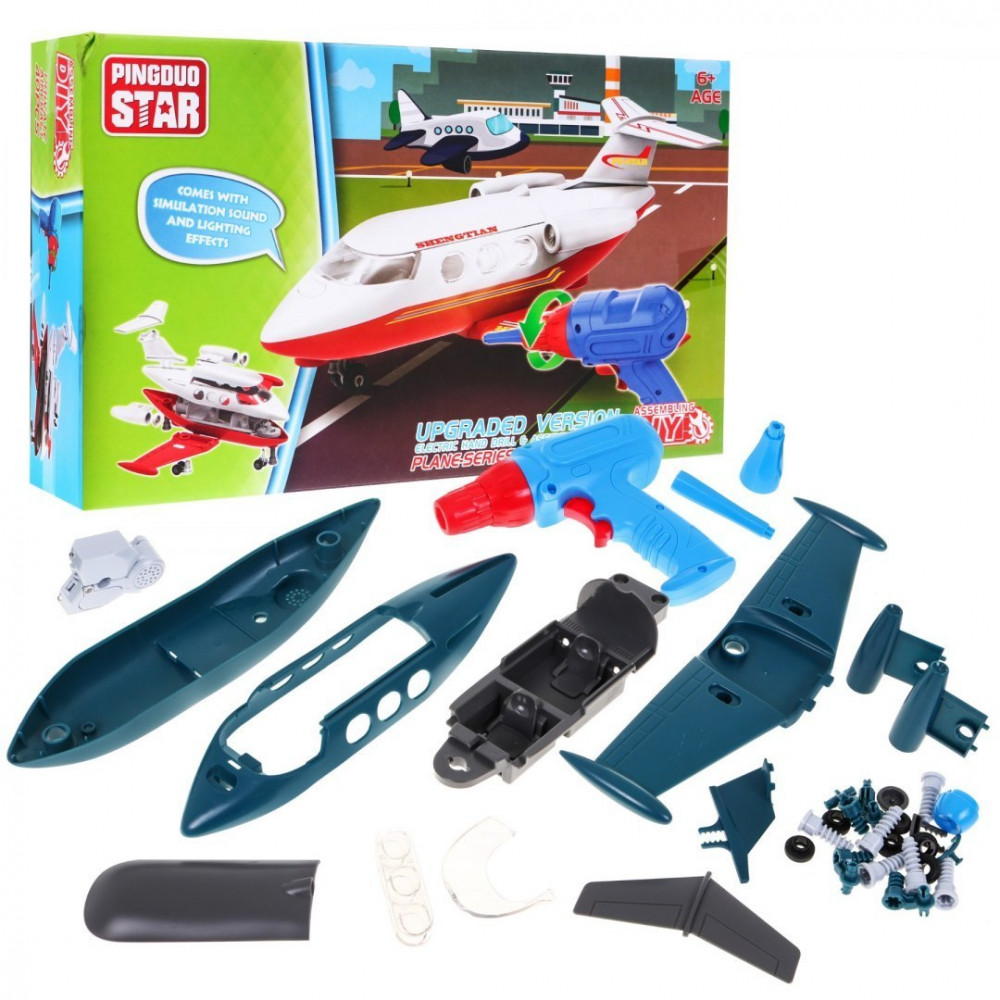 má zvukové efekty (letové zvuky - lietadlo, vŕtacie zvuky - vrtáky) a svetlo