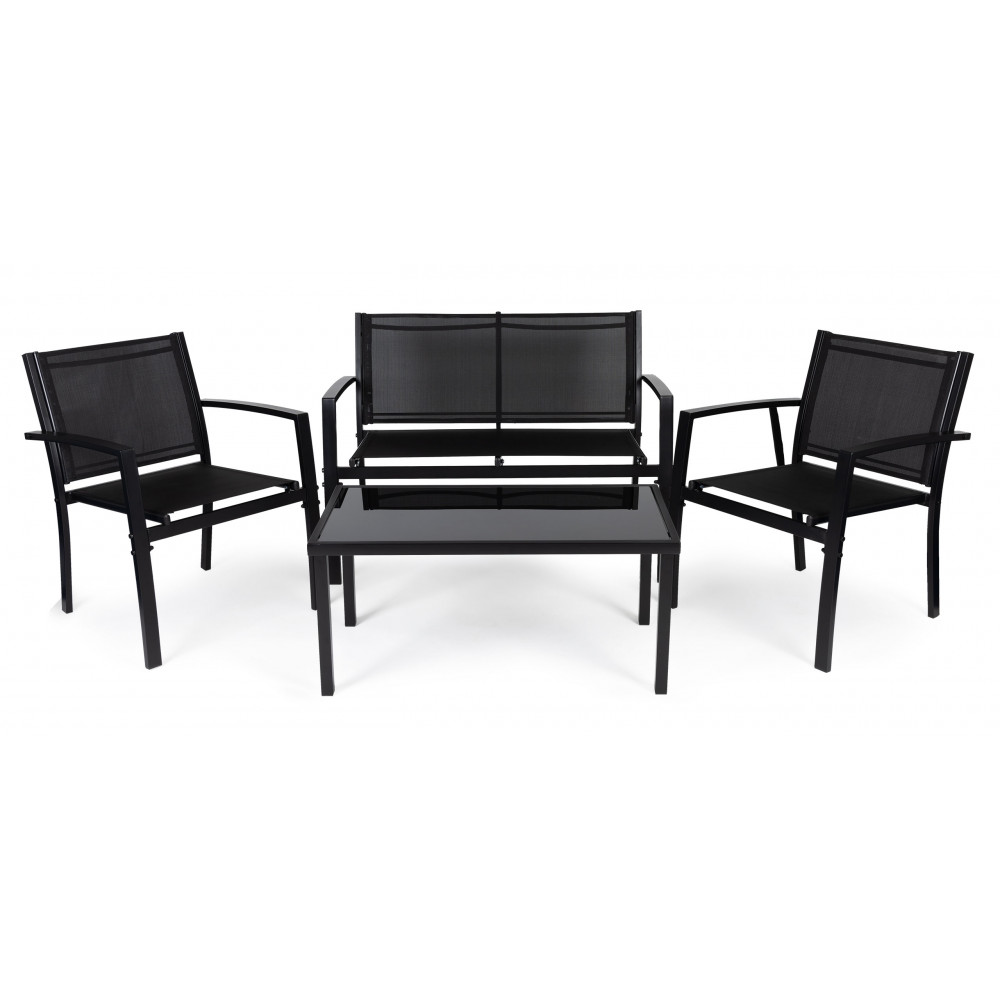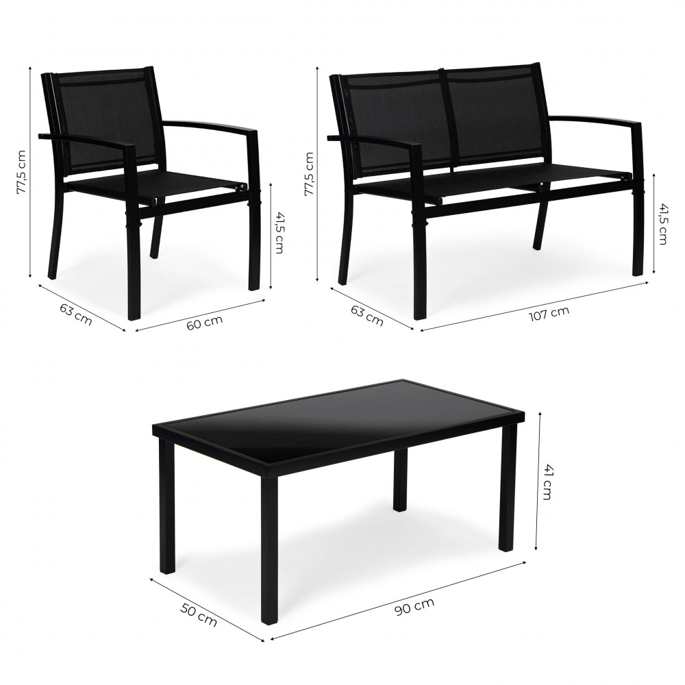 - Sada obsahuje: 2 stoličky a lavicu, stôl so sklenenou doskou