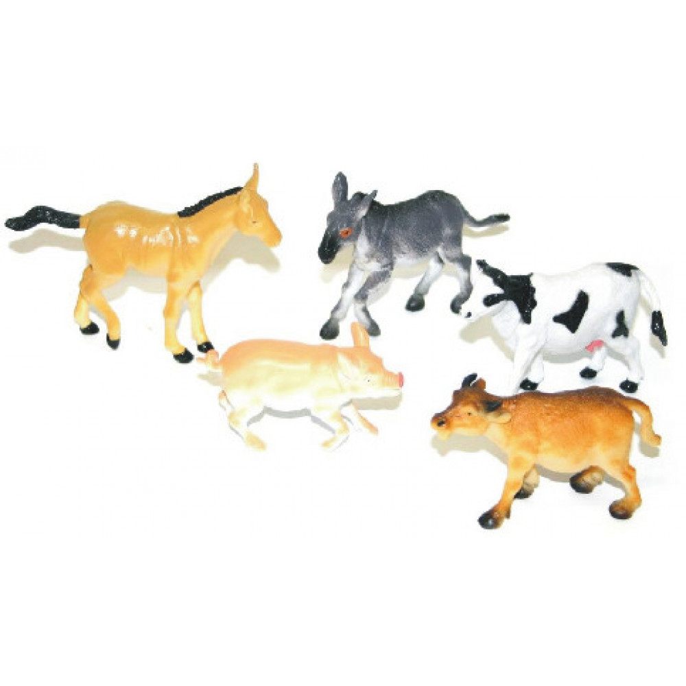 prasiatko, krava, koník, býk a somárik.